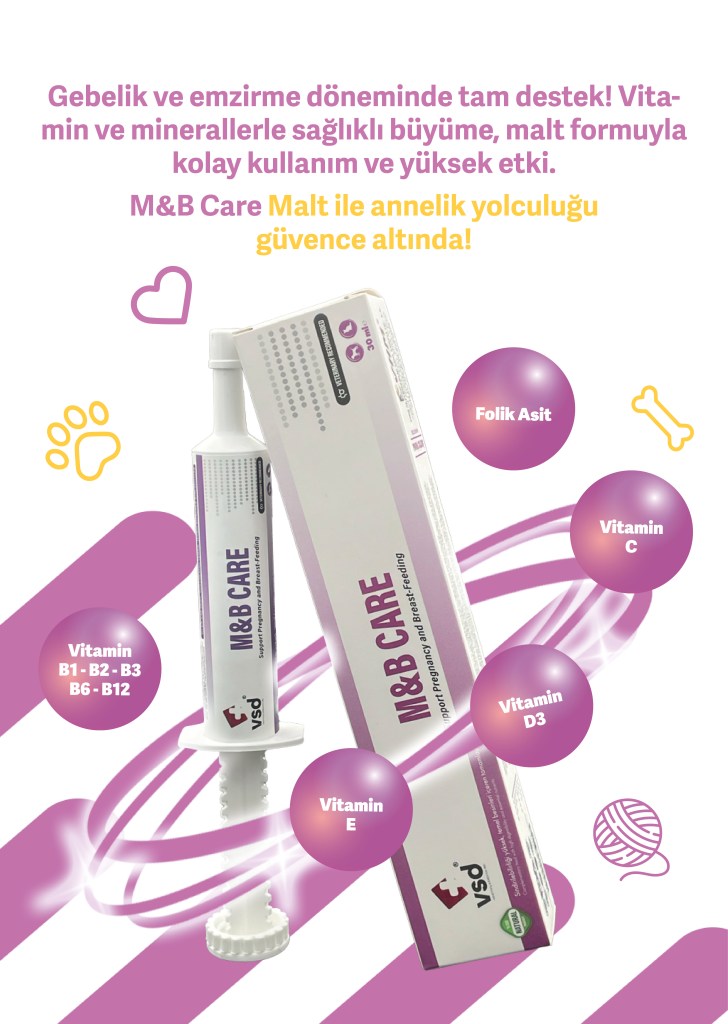 M&B Care, anne ve yavrularının sağlığını destekler, sağlıklı bir gebelik ve emzirme dönemi için özel olarak formüle edilmiştir.